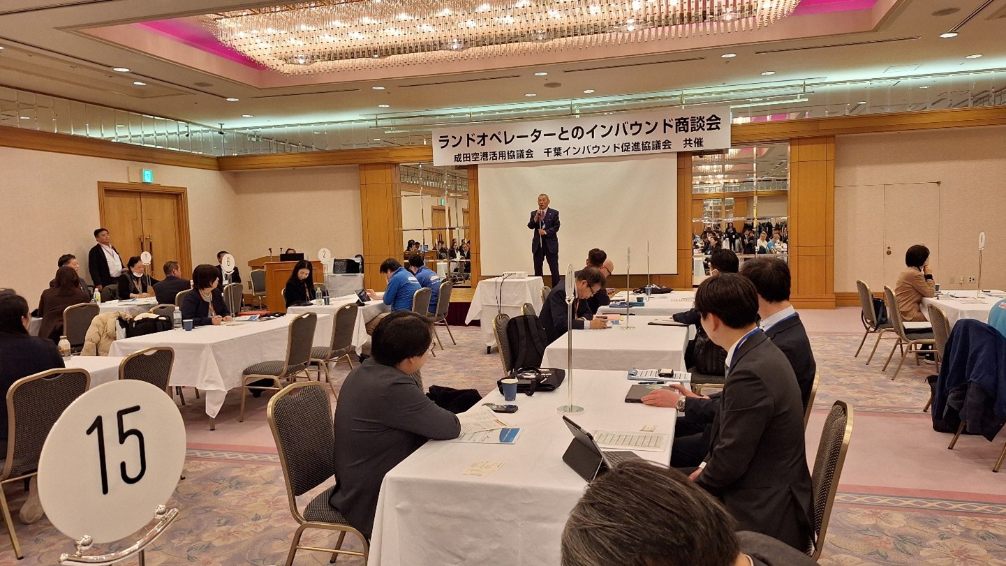 ちば国際コンベンションビューロー(CCB)は、MICE誘致活動の一環として、千葉インバウンド促進協議会と成田空港活用協議会が共催した「インバウンドセミナー・商談会・交流会」に参加しました。本イベントは、千葉県への訪日外国人旅行客(インバウンド)の誘致強化を目的に、2月18日(水)に開催されたものです。会場となった成田東武ホテルエアポートには、観光関連事業者や旅行会社など多くの関係者が集まり、海外からの旅行手配を担うランドオペレーターとの交流を深めました。